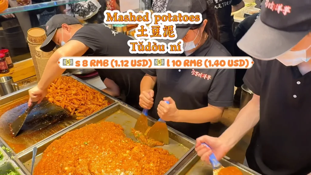 Prices for Tǔdòu ní (土豆泥) Mashed potatoes 🥔 are 8 RMB (USD 1.12) for a small serving and 10 RMB (USD 1.40) for a large.